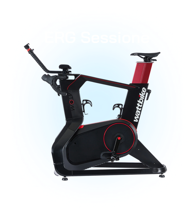La bike ERG regola automaticamente la resistenza in base all’FTP del rider e al target dell’intervallo corrente.